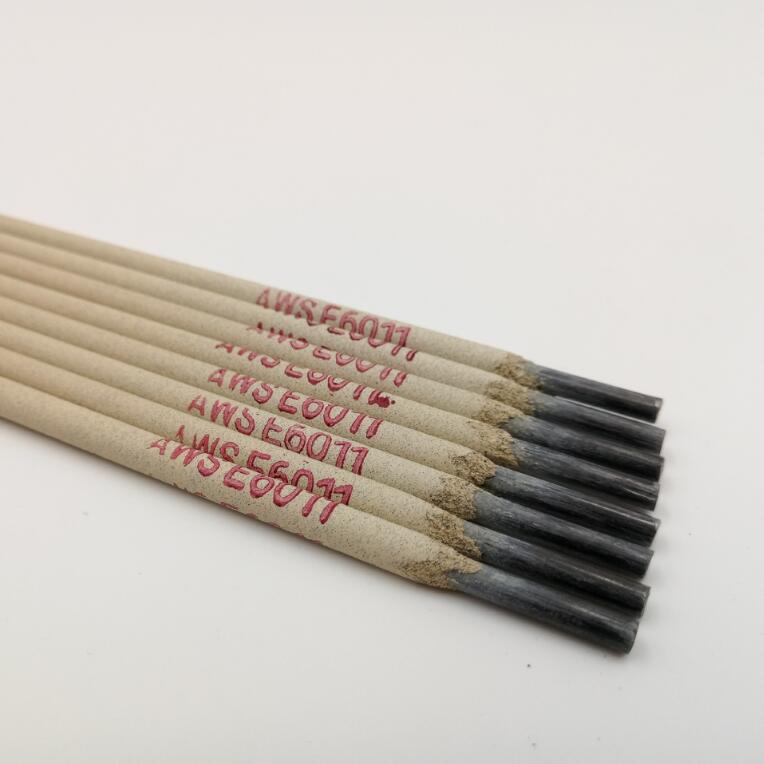 Welding rods E6011 cellulose type vertical downward special electrode welding electrode E6011 is a cellulose potassium type coating vertical down special acid electrode. Both AC and DC can be used and can be all-position welding including vertical down welding.